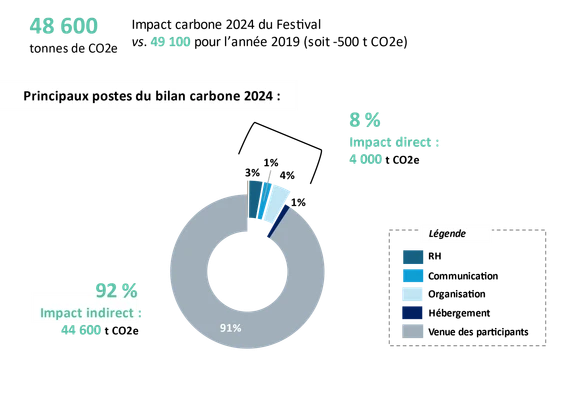 Cet objectif pourra être atteint grâce en particulier à un travail rigoureux sur les deux postes principaux de son empreinte environnementale : l’empreinte liée au nombre et au voyage des participants venant jusqu’à Cannes (environ 90% de l’empreinte du Festival en 2019) et l‘empreinte liée aux aménagements et équipements (5,5% de l’empreinte du Festival en 2019).
